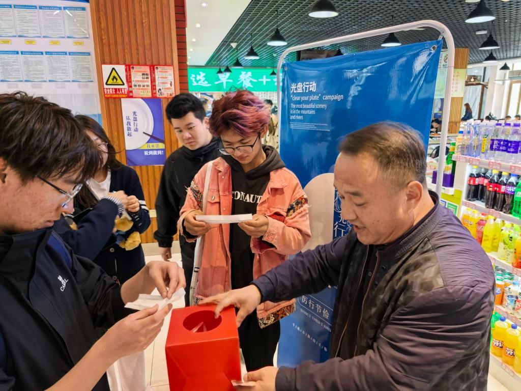 为深入贯彻习近平总书记关于制止餐饮浪费行为的重要指示精神,传承中华民族珍惜粮食的传统美德,引领文明健康饮食新风尚,在学校党委的精心部署下,后勤保障部餐饮安全科携手两家餐饮公司于4月24日、25日举办了“杜绝餐饮浪费,践行光盘行动”主题活动,致力于培养大学生厉行节约、反对浪费的良好习惯。